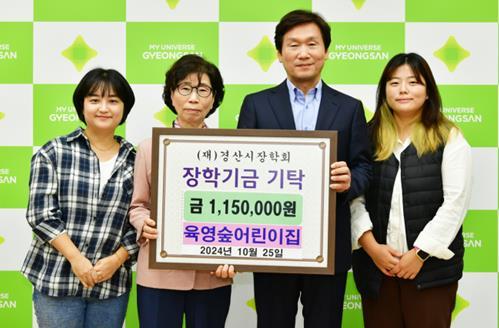 (재)경산시장학회는 육영숲어린이집이 25일 인재육성을 위한 장학기금 115만원을 기탁했다고 밝혔다.