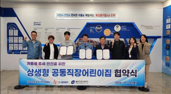 대구교통공사는 지난 24일 저출생 위기극복을 위해 대구 소재 중소기업 2곳과 ‘상생형 공동직장어린이집 운영’을 위한 업무협약을 체결했다.