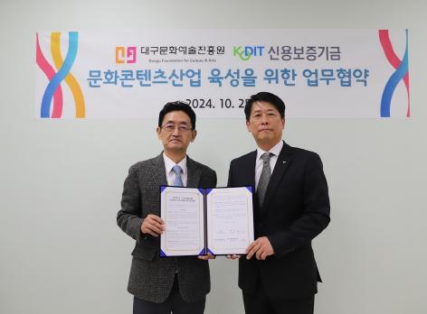 (재)대구문화예술진흥원과 신용보증기금 대구경북영업본부가 10월 25일 문화콘텐츠산업 활성화를 위한 업무협약을 체결했다.