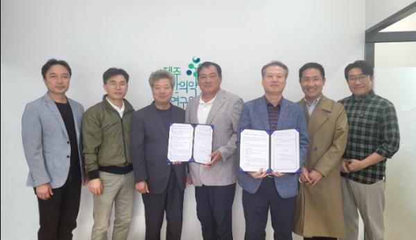 (재)제주한의약연구원(원장 송민호)과 농업회사법인㈜제주신흥진피(대표 김조만)는 25일 제주한의약연구원 본원에서 ‘펠롱플러스(기능성표시식품) 제품 개발’에 관한 기술사용 계약을 체결했다