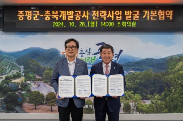 충북 증평군이 충북개발공사(사장 진상화)와 28일 군청 소회의실에서 ‘전략사업 발굴과 협력’을 위한 기본 협약을 체결했다.