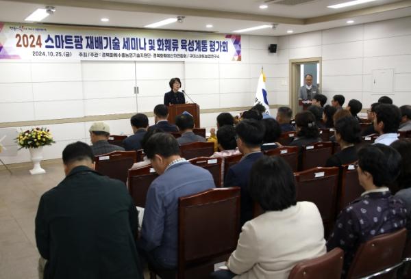 경상북도농업기술원은 지난 25일 구미스마트농업연구소에서 시설원예 농가의 경쟁력 향상과 화훼 우량품종 평가를 위한 ‘스마트농업 기술 세미나 및 화훼 품평회’를 개최했다.