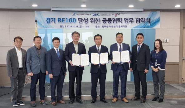 경기도사회적경제원-경기평택항만공사-경기콘텐츠진흥원이 28일 경기평택항만공사 본사에서 ‘경기 RE100 달성을 위한 업무협약’을 체결했다.
