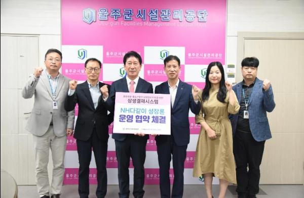 울주군시설관리공단은 28일 공단 본부에서, 상생결제시스템(NH다같이성장론) 제도의 안정적 정착을 위해 농협은행 울주군지부와 운영협약을 체결했다.