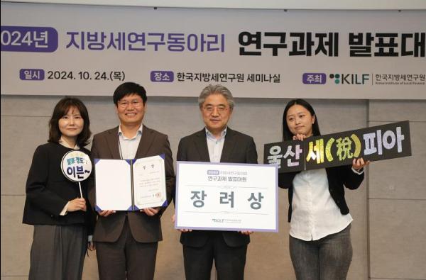울산 중구가 지난 10월 24일 한국지방세연구원에서 열린 ‘2024년 지방세 연구동아리 연구과제 발표대회’에서 장려상을 받았다.
