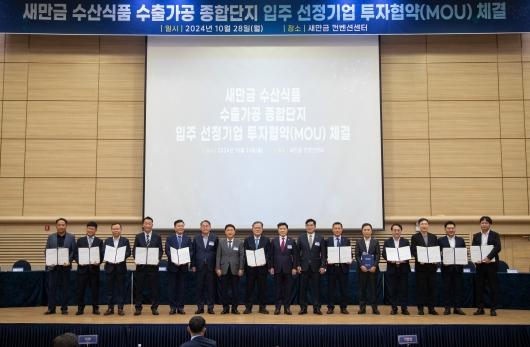 군산시가 28일, 군산새만금컨벤션센터에서 새만금 2공구 새만금 수산식품 수출가공 종합단지 12개 입주기업과 1700억 규모의 투자 협약(MOU)을 체결했다