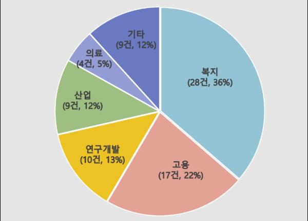그리고 보상금 지급액이 가장 큰 분야는 ?연구개발(3억8천여만 원, 37%)?고용(2억4천여만 원, 23%) ?의료(1억5천5백여만 원, 15%) ?복지(1억3천여만 원, 13%) 순이었다.