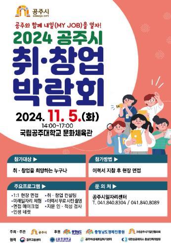 공주시는 오는 11월 5일 국립공주대학교 문화체육관에서 ‘2024 공주시 취·창업박람회’를 개최한다고 29일 밝혔다.
