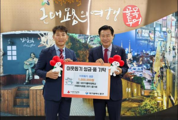 대구가톨릭대학교 미래지식포럼 29기 동기회는 28일 대구 중구청을 방문해 이웃돕기 성금 100만원을 기탁했다.
