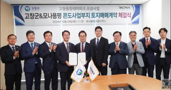 29일 고창군에 따르면 이날 오전 서울시 용산센트럴파크에서 ‘고창 종합테마파크 토지매입 계약 체결식’이 열렸다.