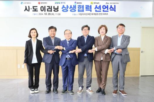 경기도는 29일 전북 완주에 위치한 지방자치인재개발원에서 인천광역시, 광주광역시, 충청북도, 전라남도, 제주특별자치도의 5개 교육기관과 함께 ‘시도 이러닝 상생협력 선언식’을 개최했다.