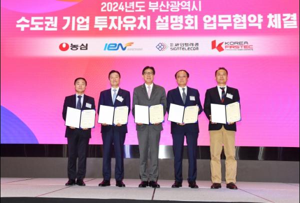 아울러 시는 ㈜농심, ㈜IEN한창, ㈜싸인텔레콤, ㈜코리아퍼스텍 총 4개사와 함께 투자협약을 체결한다. 이번 협약 체결로, 2,525억 원을 부산에 투자해 310여 명의 신규 일자리가 만들어질 것으로 기대된다.