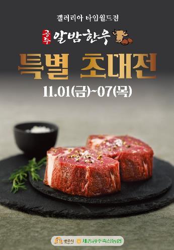 공주시는 오는 11월 1일부터 7일까지 일주일간 갤러리아 타임월드점 한우 먹는 날 기념 공주알밤한우 특별 초대전을 개최한다.