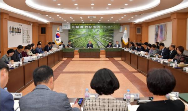담양군은 지난 29일 담양군청 면앙정실에서 이병노 군수 주재로 간부공무원 및 읍면장이 참석한 가운데 주요 현안 사항 논의를 위한 10월 읍면장회의를 개최했다.