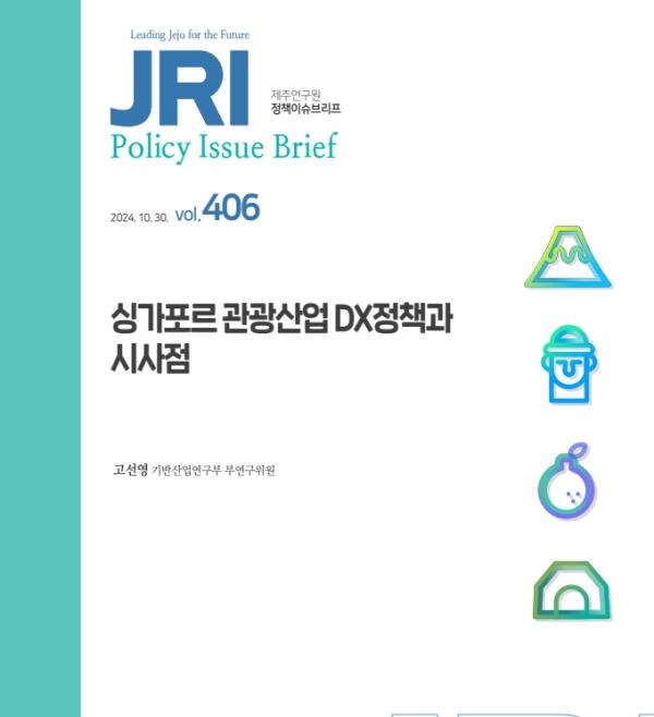 제주연구원은 정책이슈브리프 ‘싱가포르 관광산업 DX 정책과 시사점’을 통해 국가 전체 정책기조와 관광정책의 방향성을 디지털전환으로 설정하고 체계적으로 실행하고 있는 싱가포르의 사례를 토대로 제주관광 디지털전환 정책 수립에 시사점을 제시했다.