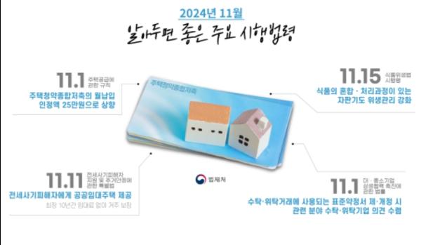 법제처는 이러한 내용을 포함하여 11월에 총 26개의 법령이 새로 시행된다고 밝혔다.