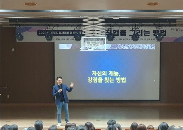김포시는 지난 10월 30일 장기도서관 대강당에서 ‘꿈과 취업을 그리는 방법’이라는 주제로 일자리센터 명사특강을 개최했다.