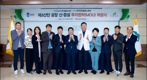 제천시는 지난 10월 31일 제천시청에서 건강기능식품 제조기업인 (주)웰레스트(대표 정성인) 그리고 ㈜미라클헬스케어(대표 김교일)와 제천 제3산업단지 공장 신·증설 투자협약을 체결했다.