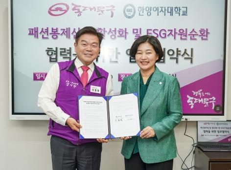 동대문구는 10월 31일 한양여자대학교와 패션봉제산업 활성화 및 ESG 자원순환 협력체계 구축을 위한 협약을 체결했다.