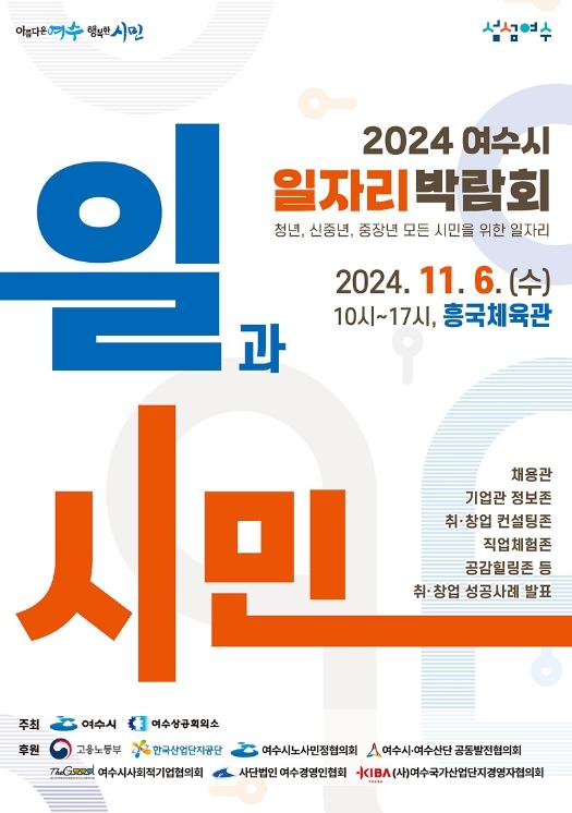 ‘2024 여수시 일자리 박람회’가 오는 6일 ‘일과 시민’을 주제로 흥국체육관에서 열린다.