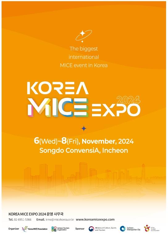인천광역시와 인천관광공사는 오는 11월 6일부터 8일까지 3일간 송도컨벤시아에서‘2024 코리아 마이스 엑스포(Korea MICE Expo 2024)’를 개최한다.