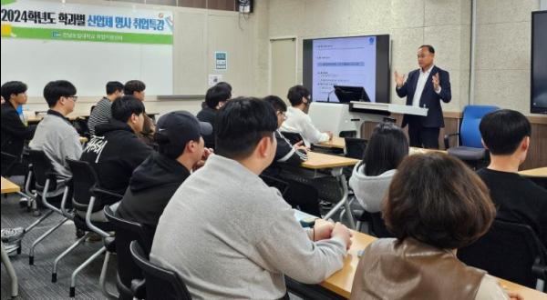 전남도립대학교 미래자동차학과는 재학생들의 취업 및 창업 역량을 높이기 위해 지난 4일 김원만 새한그룹 회장을 초청, ‘산업체 명사 취업특강’을 했다.