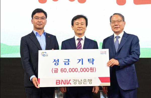 BNK(주)경남은행이 5일 ‘2024 진주복지박람회’에서 지역 내 어려운 이웃을 돕기 위해 성금 6,000만 원을 (재)진주시복지재단에 기부했다.