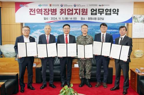 창원특례시는 5일 시청 접견실에서 해군 진해기지사령부 등 6개 일자리 유관기관과 ‘전역 장병 취업지원을 위한 업무협약’을 체결했다고 밝혔다.