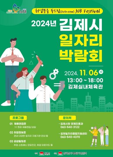 김제시는 6일 “2024년 김제시 일자리박람회”를 김제시 실내체육관에서 개최한다고 밝혔다.