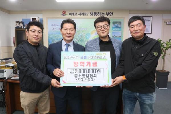 곰소젓갈협회 회원들이 부안군 지역인재 육성과 교육환경 개선에 동참하고자 장학금 200만원을 기탁했다.