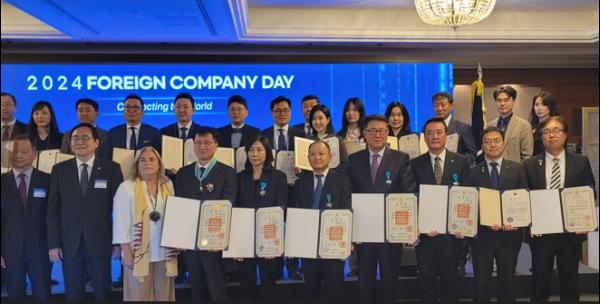 구미시가 지난 5일 서울 그랜드 인터컨티넨털 파르나스 호텔에서 산업통상자원부 주최로 열린 ‘2024 외국인 투자유치 유공자 포상 수여식’에서 대통령 표창을 수상했다. 이번 표창은 구미시가 도레이첨단소재와 하이엠케이 등 해외 투자기업을 성공적으로 유치한 성과를 인정받은 결과다.