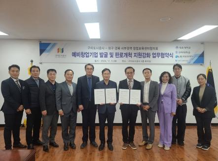 구미도시공사는 지난 5일 대구·경북 서부권역 창업보육센터협의회(경운대학교창업보육센터, 구미대학교창업보육센터, 국립금오공과대학교창업보육센터, (재)여성기업종합지원센터경북센터)와 ?창업기업 발굴 및 판로개척 지원사업? 업무협약을 체결했다.
