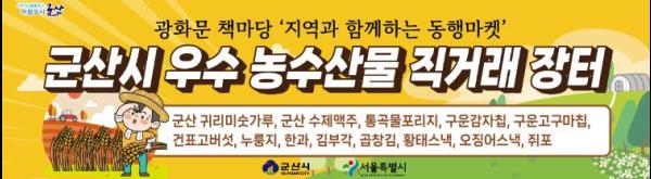 군산시가 8일부터 10일까지 3일 동안 서울‘광화문 책마당 - 동행마켓’에서 ‘군산 농수산물 직거래 장터’를 운영한다.