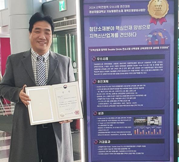 경상국립대학교(GNU·총장 권진회) 4단계 두뇌한국21(BK21) 사업 ‘GNU 지능형 첨단소재 개척인재양성 교육연구단(단장 남상용 교수)’은 11월 6일 부산 벡스코에서 개최된 산학협력 엑스포 시상식 ‘2024년 산학협력 우수사례 경진대회 인력양성 부문’에서 우수상(부총리 겸 교육부 장관상)을 수상했다.