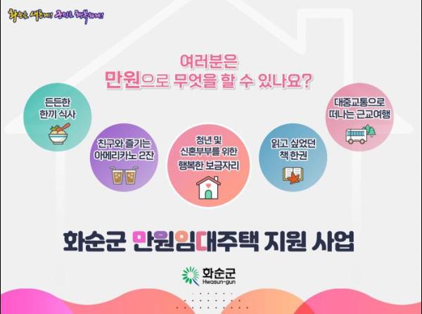 전남 화순군의 대표 정책인 '청년·신혼부부를 위한 만원 임대주택 지원 사업'이 '2023년 인구감소지역 대응 시행계획 성과평가에서 주요 우수 실천 과제로 선정되었다.