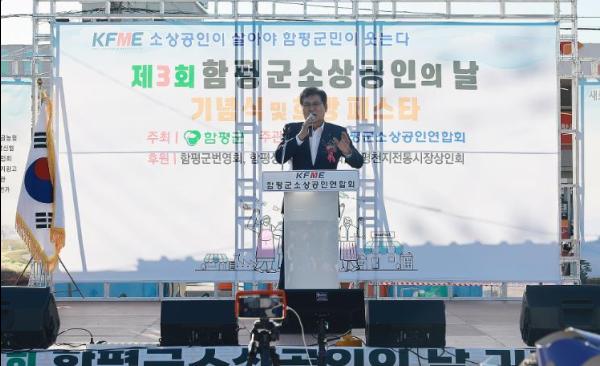 전남 함평군이 주최하고 함평군 소상공인연합회가 주관한 제3회 ‘함평군 소상공인의 날’ 기념식이 6일 함평5일시장 공영주차장에서 성대하게 개최됐다.