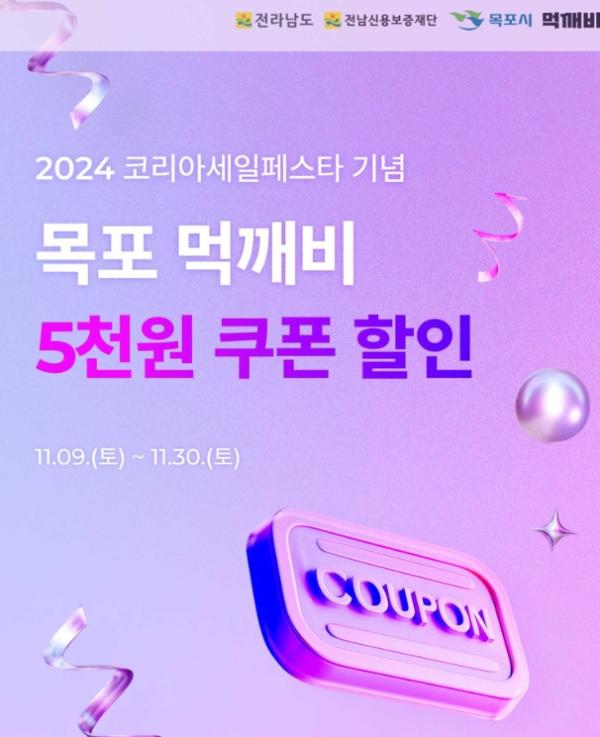 목포시가 ‘국가대표 쇼핑축제, 2024 코리아세일페스타’를 맞아 오는 9일부터 30일까지 전남도 민간 협력형 공공 배달앱인 ‘먹깨비’ 할인이벤트를 진행한다.