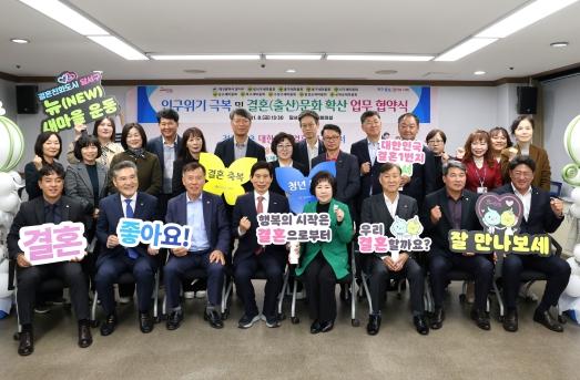 협약에 합의한 기관은 인구감소를 넘어 인구절벽 재앙에 선제적으로 대응하고 잘 만나보세, 뉴(NEW)새마을운동 범국민 확산 등 결혼장려 사회적 분위기 조성에 협력하기로 했다.