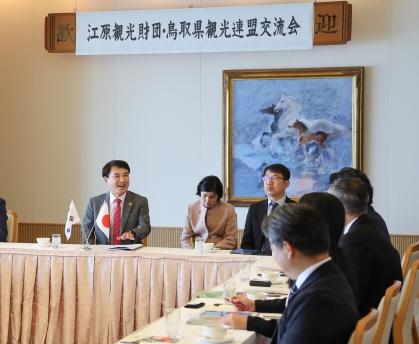 김진태 강원특별자치도지사는 “2025-2026 강원방문의 해 기간 동안 우리 도를 많이 방문해 주시길 바란다”고 홍보하며, “돗토리현에 와보니 훌륭한 관광자원이 무궁무진하다”며, “이번 관광기구 간 교류회를 시작으로 양 지역이 관광 활성화를 위해 다방면으로 협력해 나가길 기대한다” 고 밝혔다.
