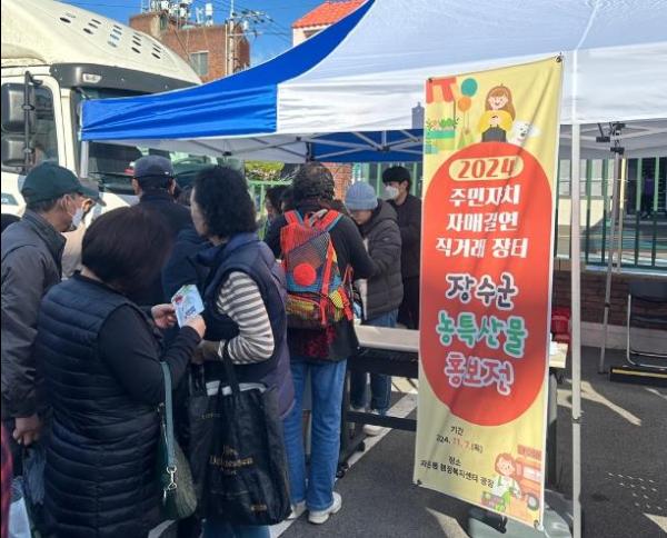장수군 계남면 주민자치위원회는 지난 8일 자매결연지인 창원시 진해구 자은동 행정복지센터 주차장에서 농·특산물 직거래장터를 열었다.