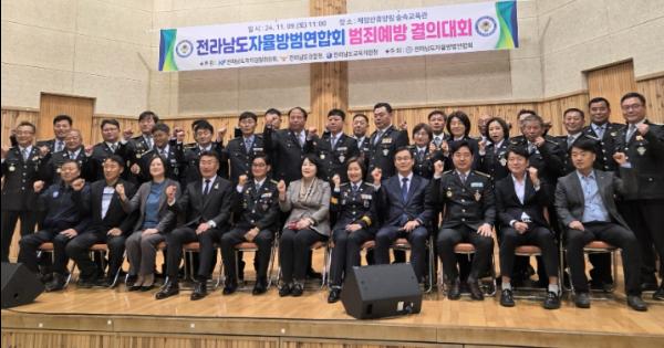 전라남도자율방범연합회가 한 해 성과 공유 및 소통화합 증진을 위한 결의대회를 최근 보성 제암산휴양림 숲속교육관에서 열어 지역 안전을 지키는 중심 역할에 나서겠다는 의지를 다졌다.