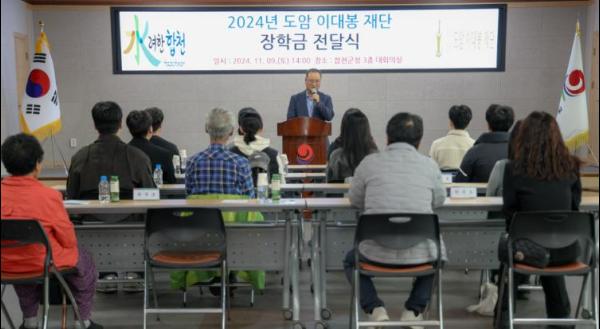 김윤철 합천군수는 “지역사회와 미래 인재들에게 큰 희망을 선물해준 도암 이대봉 재단에 깊이 감사드린다”며, “이 장학금을 통해 학생들이 자신의 꿈을 이루고, 그 결실을 사회에 환원하는 멋진 어른으로 성장하길 기대한다”고 말했다.