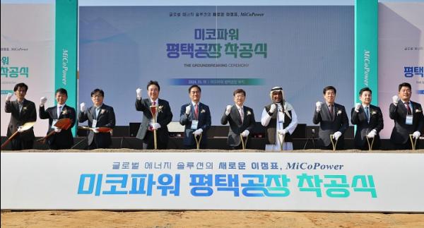 이날 착공식에는 정장선 시장을 비롯해 강정구 평택시의회 의장, 미코그룹 전선규 회장, 미코파워 하태형 대표이사 등 300여 명이 참석해 미코파워 신공장 착공식을 축하했다.