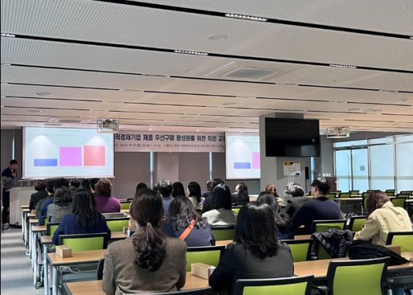 군산시는 지난 11일 공공구매 담당 직원을 대상으로 ‘2024 사회적경제 기업 제품 우선구매 활성화를 위한 직원 교육’을 사회적경제혁신타운 다목적 강의실에서 개최했다.