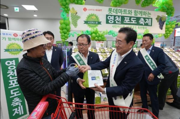지난 10월 2일부터 8일까지 7일간 롯데마트·롯데슈퍼 전국 315개점에서 진행했던 영천포도 특판행사는 MBA포도와 샤인머스켓을 1.5kg 7만 상자, 총 105톤 판매를 계획했으나, 소비자들의 예상보다 큰 호응에 힘입어 1만 상자를 추가한 8만 상자, 총 120톤을 판매해 약 11억원에 달하는 기대 이상의 매출을 달성하기도 했다.
