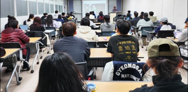 진로취업지원실은 11월 12일 가좌캠퍼스 GNU컨벤션센터 잡서포트룸에서 열린 해외취업설명회와 아카데미에서 해외 취업을 위한 다각적인 교육과 실습 기회를 제공했다.