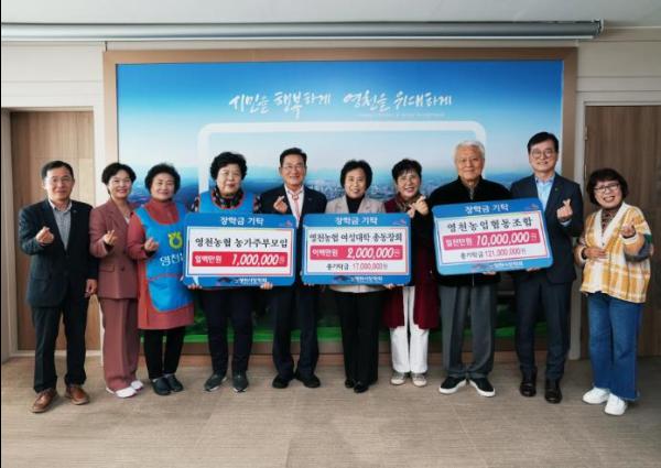 영천농업협동조합은 4천여 명의 조합원을 보유한 지역 최대규모의 농협으로 장학회와 2008년 처음 인연을 맺고 한 해도 쉬지 않고 꾸준히 기탁을 이어와 총 17회 1억 2천1백만원의 장학금을 기탁했다.