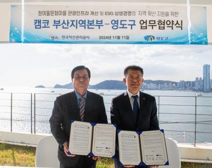 부산시 영도구는 지난 11월 11일 흰여울문화마을 카페 에테르에서 한국자산관리공사(캠코) 부산지역본부와 인구감소지역 흰여울문화마을 상생 지원을 위한 업무협약을 체결했다.