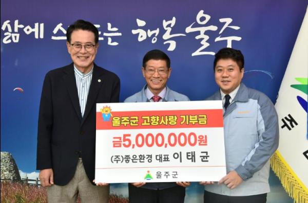 이태균 ㈜좋은환경 대표가 13일 울주군 발전을 위해 올해 2년 연속 고향사랑기부금 500만원을 기탁했다.