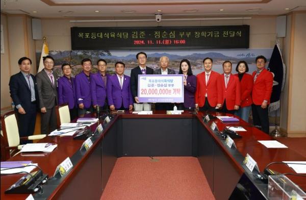 (재)신안군장학재단은 목포 등대식육식당 대표 김준·정순심 부부가 11일 신안군청을 방문해 지역 인재 육성을 위해 사용해 달라며 장학기금 2,000만 원을 전달했다고 밝혔다.